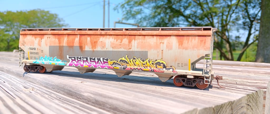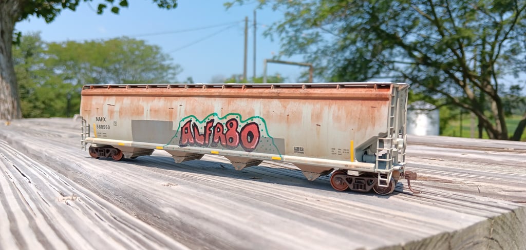 I recently bought this Walthers NSC 6200 Plastic Pellet hopper from a friend. I was getting ready to give it "the treatment" when I noticed the Burnt Umber oil paint on my bench staring at my with sad puppy-dog eyes, just begging to ooze out. So I took the plunge. Thankfully, there are plenty of other videos already on YouTube demonstrating the process. So I spent about an hour clicking through videos, absorbing their knowledge. This alone saved me a bunch of trial and error. But since oils take a lot longer to dry (and I'm not very patient), I saved it for last. I did this on my last day of the weekend, so the paint for dry enough during my work week.