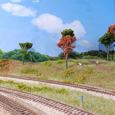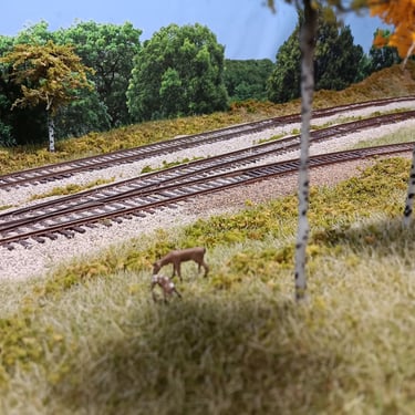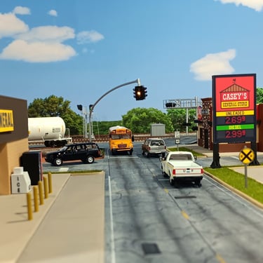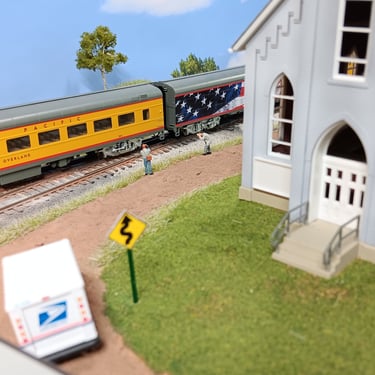 Details sell the scene. They tell a story. They shouldn't be the star of the show, rather a supporting cast to make the star (the trains!) shine even brighter. I think there should be just enough detail to make the layout seem alive, without drawing so much of the viewer's attention from the trains for which the layout exists in the first place. So, I'm not going out of my way to model a scene exactly. The road markings may not be precisely to scale or in the right position, the signs are cut out perfectly, or every blade of grass standing straight up, but together create just enough of a world that the trains aren't out of place.