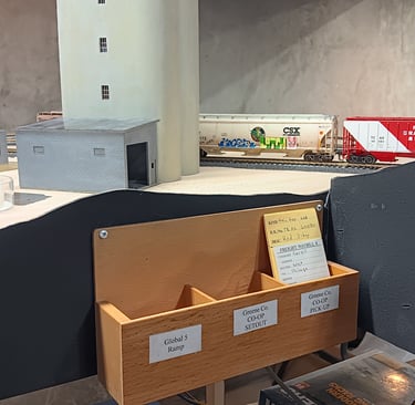 When the yard crew is finished building the locals, the road crew would run the 2 local jobs, switching the Greene County Co-op, Brenntag Pacific, and the shortline interchange. While busy with that, the yard crew would sort the remaining cars in the yard into blocks bound for staging. Upon finishing the local switching and returning to the yard, the yard crew can build the outbound manifest train, which will return to the staging track.