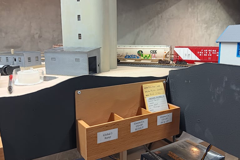 A typical operating session would see the "Road Crew" come on duty, take control of the manifest train currently tied down on the visible staging track (representing Chicago), verify their consist, and run the train looping the main track until directed to enter the yard.